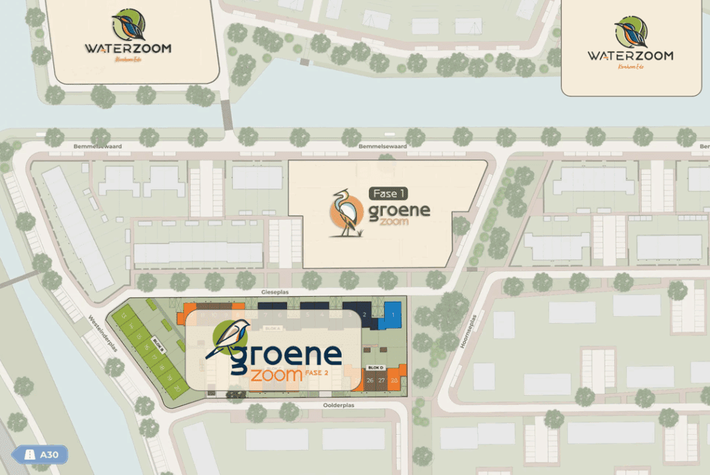 De belangstelling voor De Groene Zoom fase 2 is groot – alle 28 woningen zijn al verkocht! Het plan omvat een mooie mix van woningtypen: één vrijstaande woning, zes twee-onder-een-kapwoningen, acht herenhuizen en dertien rijwoningen.